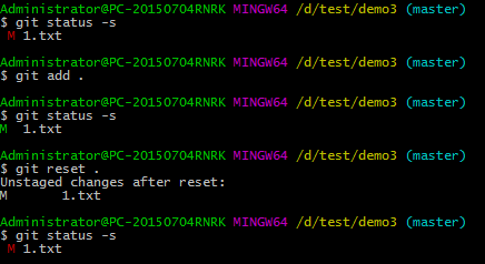 如果修改后的文件已经使用add 了,那么使用该命令可以将暂存区中的修改撤退到工作区中