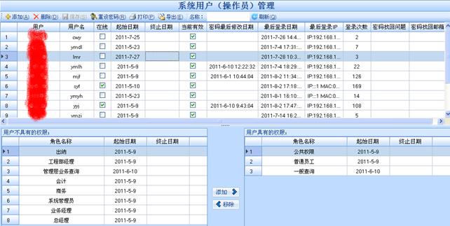 系统用户(操作员)管理如下图所示: