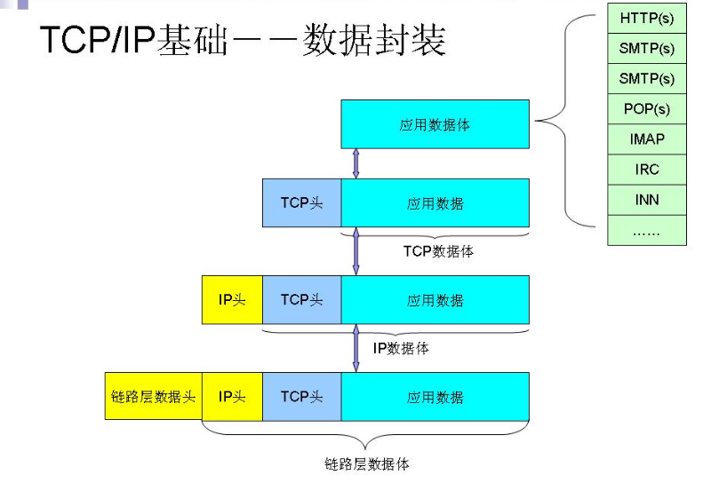 从应用层至物理层,数据是一层层封装,封装的方式一般都是在原有数据的前面加一个数据控制头,数据封装格式如下: