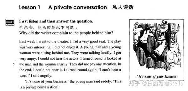 市面上我们能接触到的英文材料很多,而且基本上都是既有文本又有音频。下面,我就以一篇新概念文章为例,教大家如何练习口语的两个维度:内容和发音。
