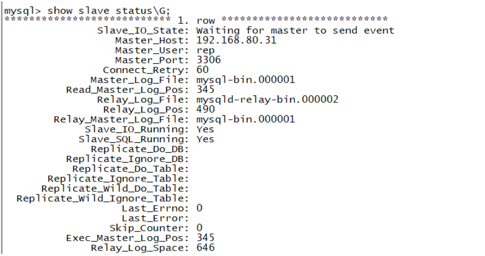 mysql> GRANT REPLICATION SLAVE ON *.* TO 'rep'@'192.168.80.%' IDENTIFIED BY '123456';