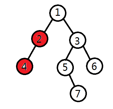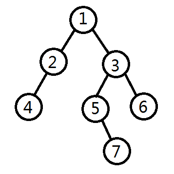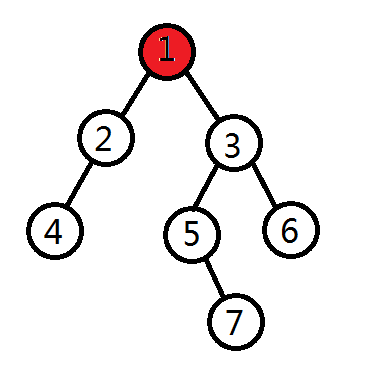 4)最终的遍历顺序为:1,2,4,3,5,7,6。
