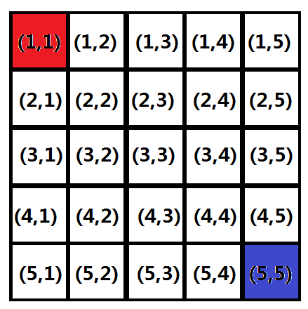 【问题引入】 假设现在有一个地图(如图),正好你想要从起点(1,1)到终点(5,5),问你有多少种走法?