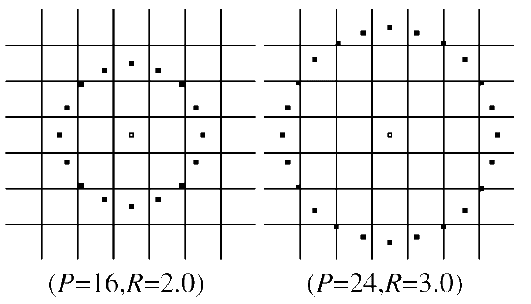 这里值得注意的是:由于采样点在圆上,所以不一定会准确的落在像素点中。因此可能需要对采样点位置进行插值获的采样点的像素估计值。