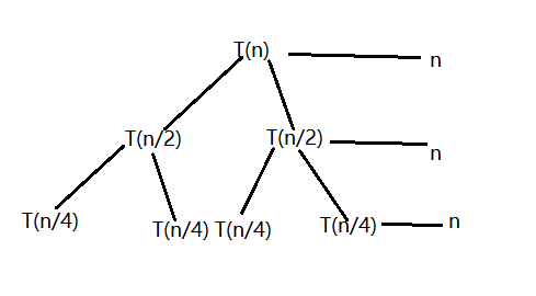 以上递归式的深度为lgn,每层的代价为n,自然推导出T(n) = T(n/2)的解为O(nlgn)