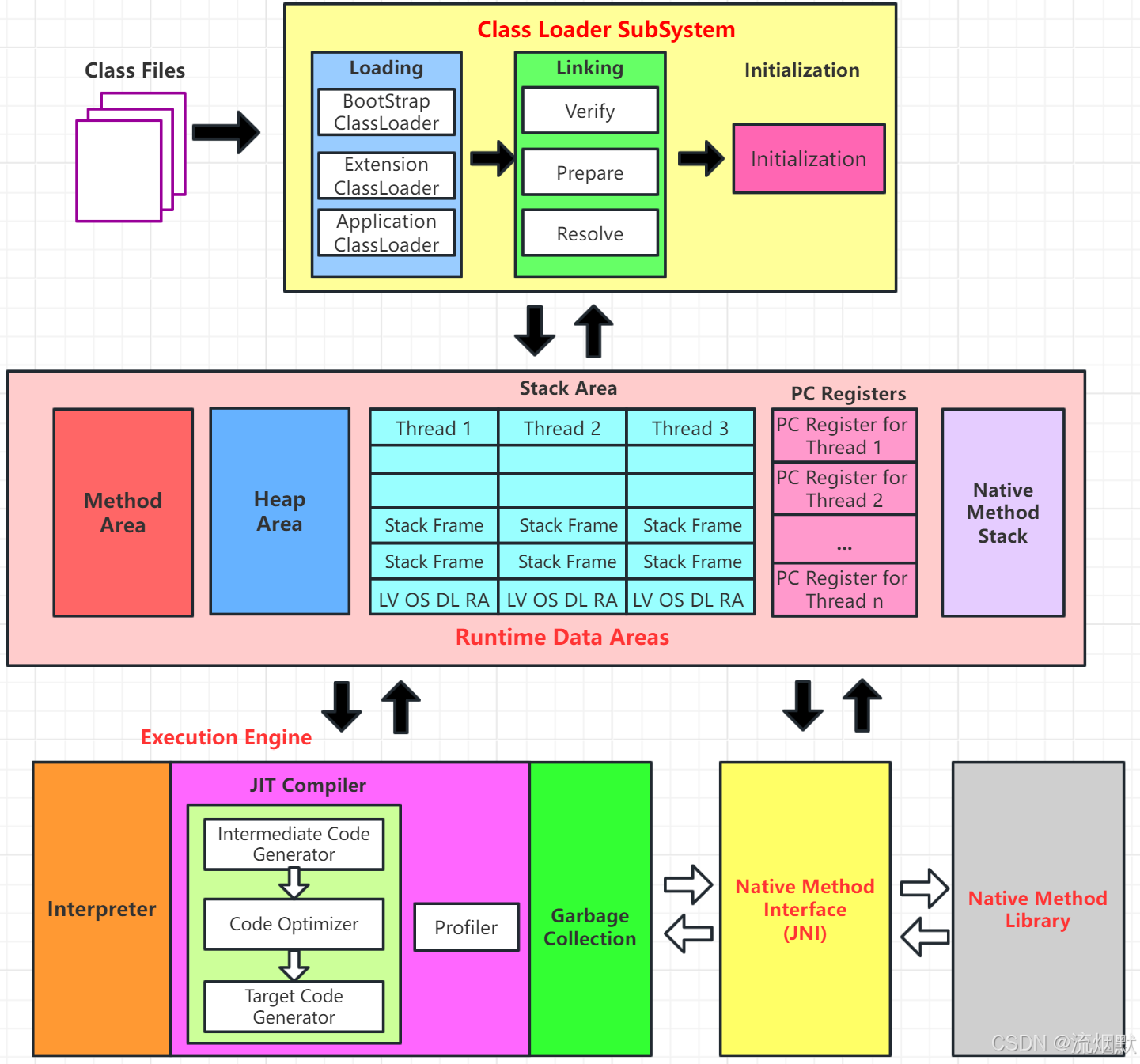 JVM运行时数据区之本地方法接口和本地方法栈 【1】本地方法接口① 什么是本地方法简单地讲,一个Native Method是一个Java调用非Java代码的接囗。一个Native Method是这样一个Java方法:该方法的实现由非Java语言实现,比如C。这个特征并非Java所特有,很多其它的编程语言都有这一机制,比如在C++中,你可以用extern "c" 告知c...