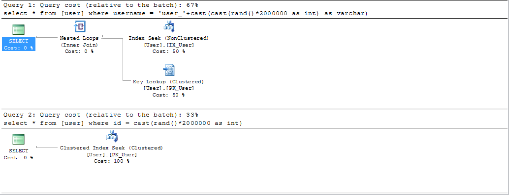 select * from [user] where username = 'user_'+cast(cast(rand()*2000000 as int) as varchar) --用户名的规则是 user_id 实在不好找其他的高命中率的例子了 勉强用吧