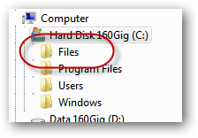 下面是一个被组织的很好的C:盘截图,所有的用户文件都在\Files文件夹下。