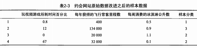 首先我们需要知道这个未知电影存在多少个打斗镜头和接吻镜头,具体数字参见表2-1。