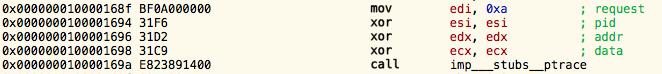 ptrace(PT_DENY_ATTACH, 0, 0, 0);