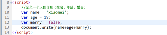 以上程序可以用于描述一个人的信息,但是从程序的上下文可知:其信息的表述并不够准确,因为name、age、marry都同属于一个人的信息,但是从以上程序中三个变量并没有任何联系。