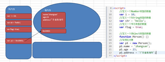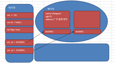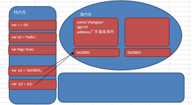 记住:由于值类型的数据都比较简单,如果放在堆内存中,每次读取都需要耗费非常多的系统资源,所以其存储于栈内存中。而对于Object对象类型的数据通常存储于堆内存。