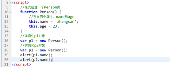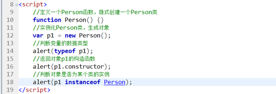- alert( p instanceof person ) :判断对象是否是某个类的实例,返回布尔类型