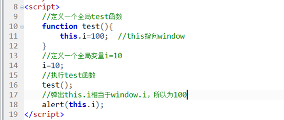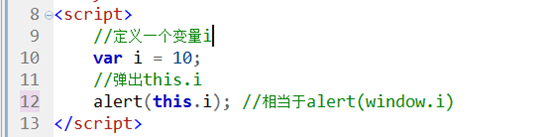 其实,在Javascript全局作用域中也存在一个特殊的this对象,其指向了全局的window对象,代码如下图所示: