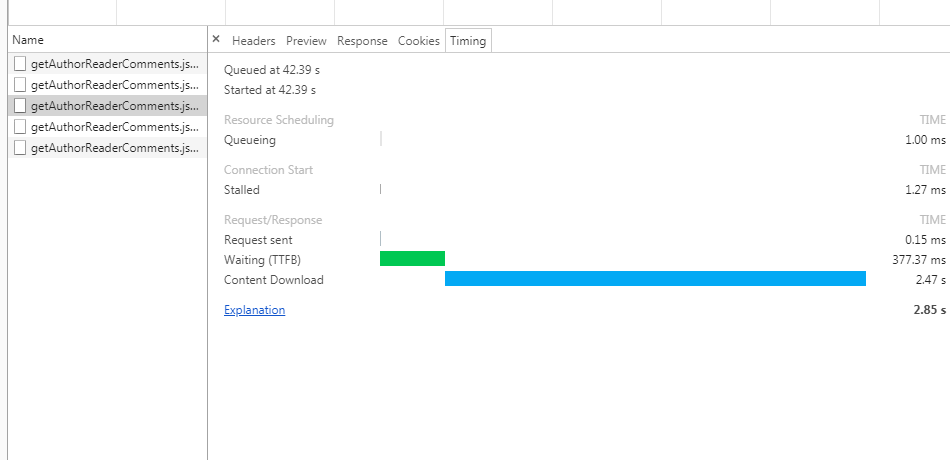 开发人员反馈给我一个bug,ajax相应速度很慢,经过定位,速度慢的原因在于,content-download时间过长,在chrome中有2s+的延迟,后证实在我们的手机客户端里也有这一延迟。截图如下:
