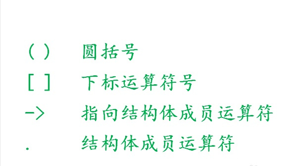 1、最高级:() [] -> . 出现同级别运算符时的结合方向是从左往右(下面级别没写结合顺序时,默认是从左往右)。