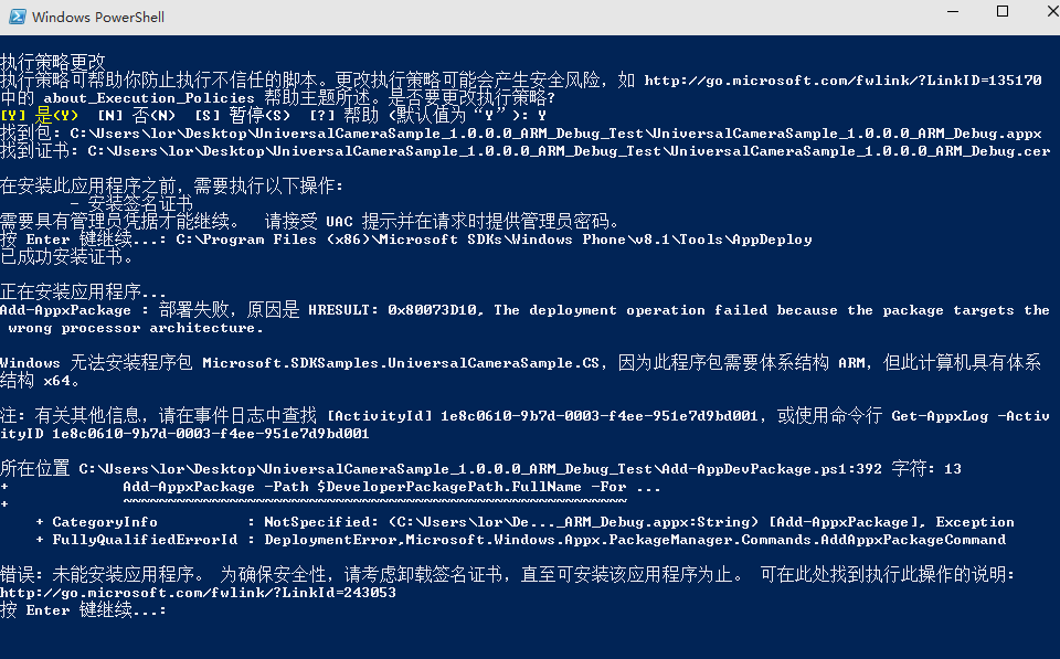 想要部署手机appx 到手机就会出错,因为不支持安装到手机上。