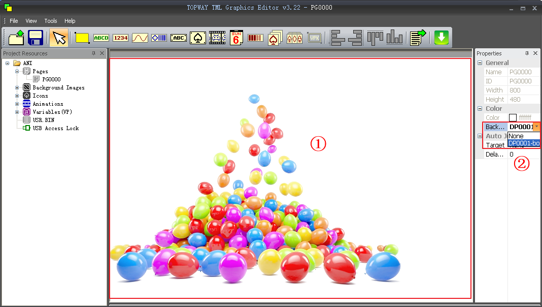 2,属性中Background Image 选择页面背景图