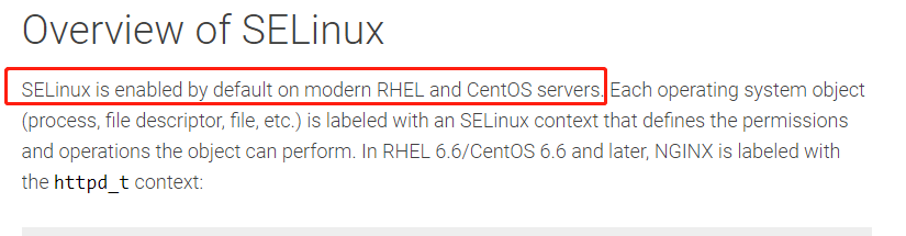 RHEL和CentOS类的服务器,SELinux默认时开启的。