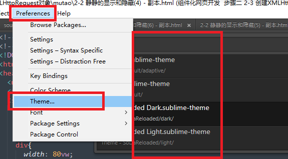 4,点击编辑器界面 --- Preferences---Theme 就会出现编辑器主题列表如下:选择器中一个 会实时显示
