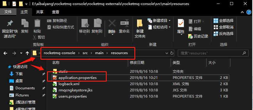 4.2、进入rocketmq-console项目,修改 E:\aibaiyang\rocketmq-console\rocketmq-externals\rocketmq-console\src\main\resources\application.properties 配置文件,