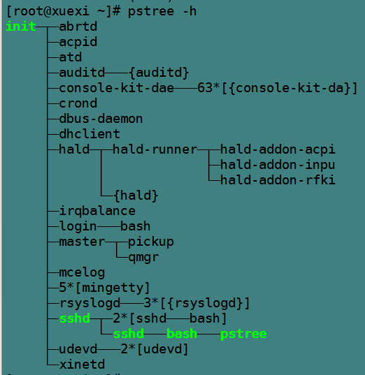 pstree命令将以树的形式显示进程信息,默认树的分支是收拢的,也不显示pid,要显示这些信息需要指定对应的选项。
