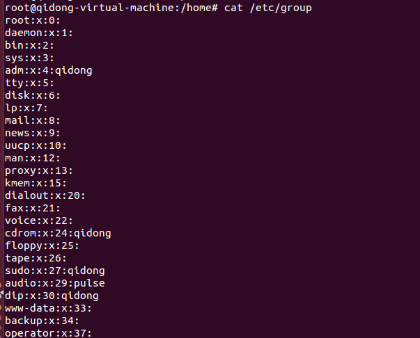 - 查看所有组的信息:(信息保存在/etc/group文件中)