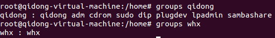 - 命令:groups 用户