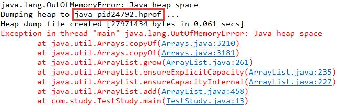 注意到“java_pid24792.hprof”文件,这个文件是JVM生成的对存储快照,之后可以通过MAT工具打开,进行分析追踪,这个文件将自动保存到你的Eclipse workspace下的工作目录中,以我的为例: