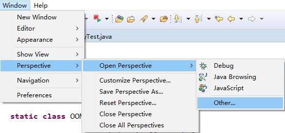 由于MAT工具需要另外打开一个工作视图(就像Eclipse EE和Java的切换视图一样),因此需要在先配置打开"Window》Perspective》Open Perspective》Other...":