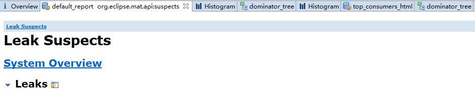 在"default_report org.eclipse.mat.api:suspects"的标签分页中