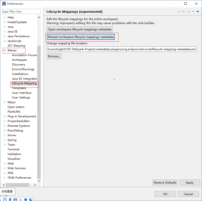 2)记得点击 ”Reload workspace lifecycle mappings metadata“按钮