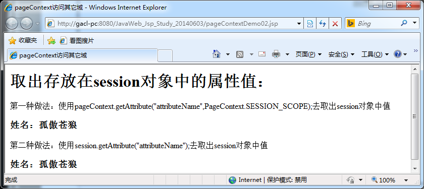 8 pageContext.setAttribute("name1", "孤傲苍狼");