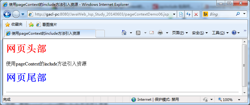 在实际开发中,使用pageContext的include方法引入页面这种做法也很少用,一般都使用jsp:include标签引入资源,因此这种做法了解一下即可。