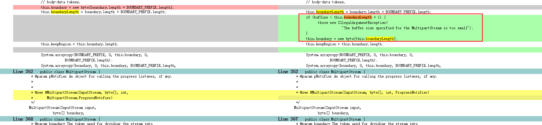 boundary.length > bufSize – 1 – BOUNDARY_PREFIX.length = 4096 – 1 – 4 = 4091 //parts of the code were copied into the org.apache.tomcat.util.http.fileupload package in Apache Tomcat, causing it to be affected.