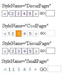 内置四种风格,通过设置StyleName(BasePager,CoolPager,DiscuzPager,SmallPager)就行,不过要注意大小写,CSS是从Assembly里面取的.