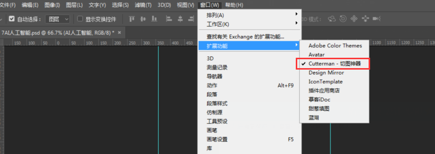 2.打开切图神奇(窗口 ==> 扩展功能 ==> Cutterman-切图神奇)