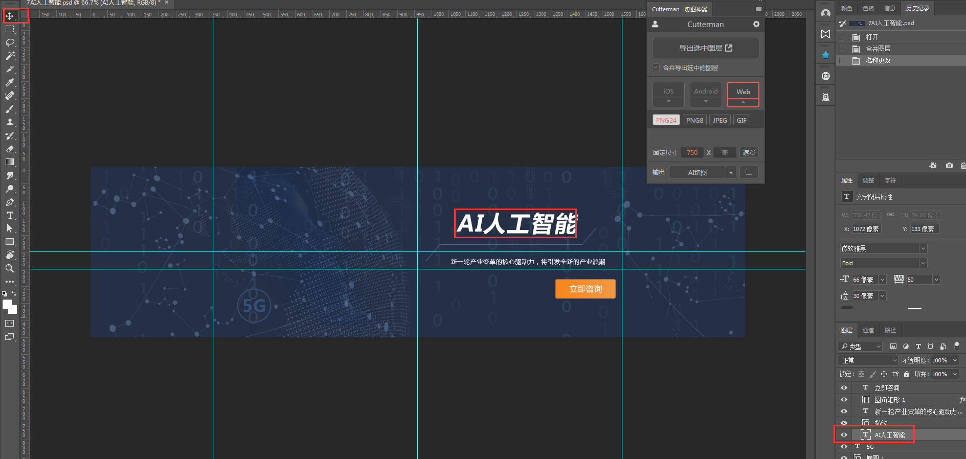 使用这个方法,省去了拉基准线、切图片以及隐藏不必要的图片这些操作,美滋滋。。。