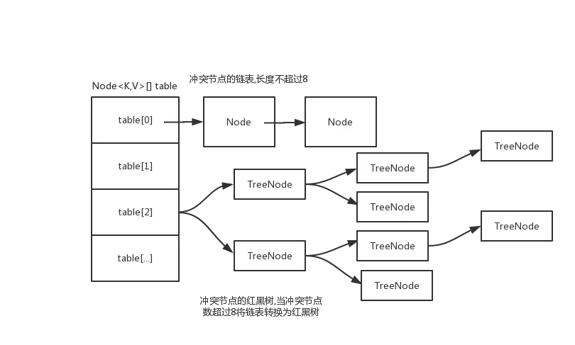 //链表结构 static class Node<K,V> implements Map.Entry<K,V> { final int hash; final K key; V value; Node<K,V> next; } //红黑树结构 static final class TreeNode<K,V> extends LinkedHashMap.Entry<K,V> { TreeNode<K,V> parent; // red-black tree links TreeNode<K,V> left; TreeNode<K,V> right; TreeNode<K,V> prev; // needed to unlink next upon deletion boolean red; }
