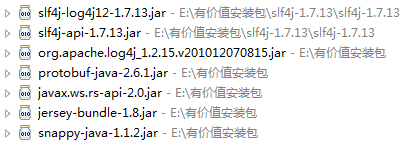 然后就开始弄一个wordCount程序。第一个NoclassFound错误报出来时我还一头雾水,后来知道要去找jar包。接着一个又一个类似错误爆出来时,我已经淡定了,直接去网上搜索相应jar包下载引用。直到最后,引用了这些自己下载的jar包,终于有结果了,呜呜~~~~(>_<)~~~~