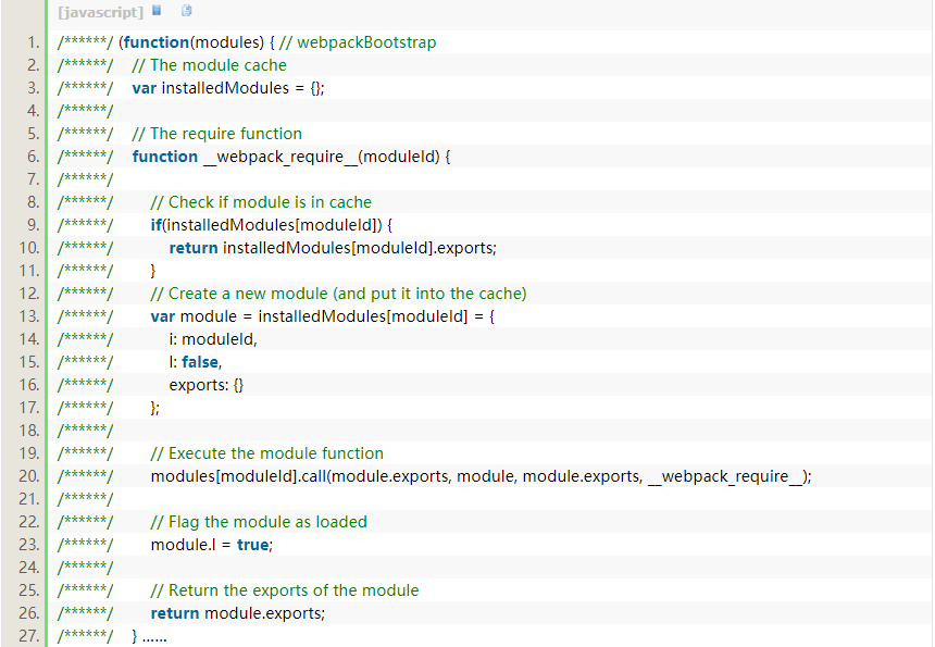 进入webpack-test/dist,然后再打开main.js,发现内容格式非常紧凑,适合生产环境下使用
