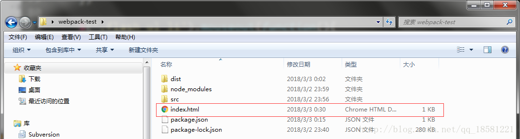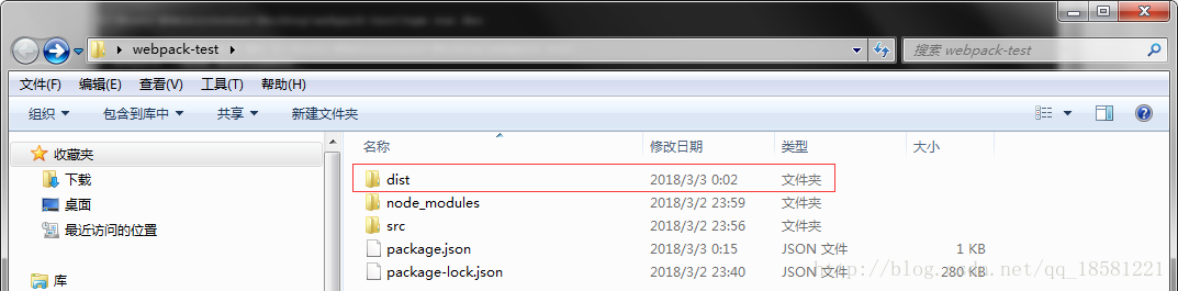 进入webpack-test文件夹,发现自动生成了一个dist文件夹,这是webpack默认输出文件位置