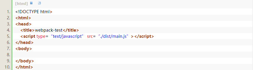 我们在webpack-test目录下新建一个index.html,引入main.js看是否可用