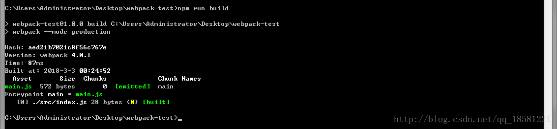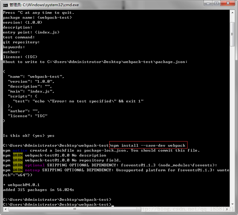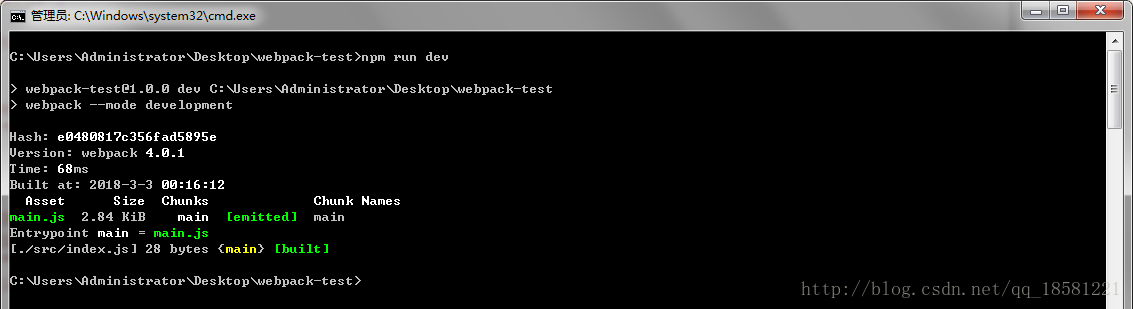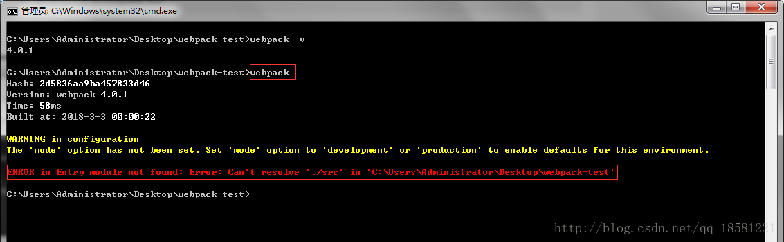 使用webpack 命令 出现错误ERROR in Entry module not found: Error: Can’t resolve ‘./src’ in ‘C:\Users\Administrator\Desktop\webpack-test’
