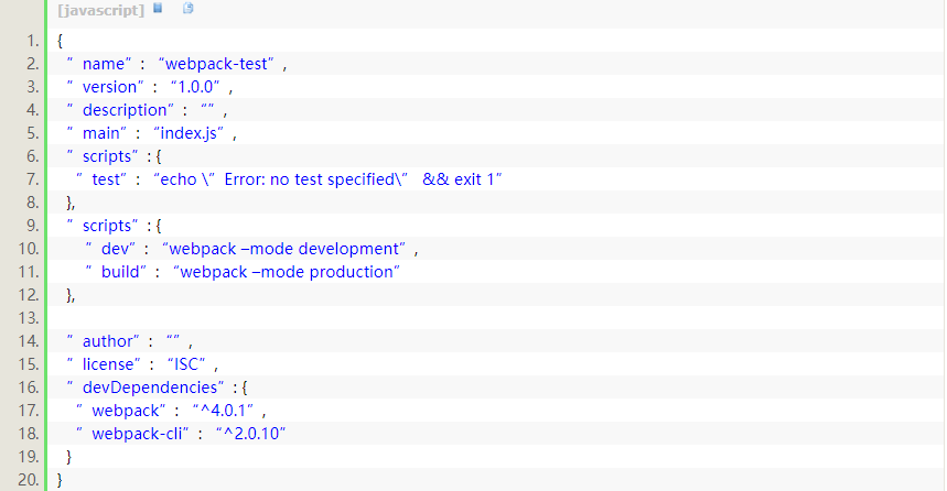 然后使用 npm run dev (相当于 webpack –mode development )或者