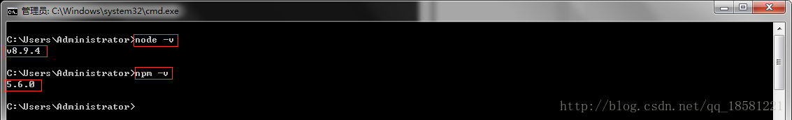输入npm -v 出现npm版本号则安装npm安装成功,