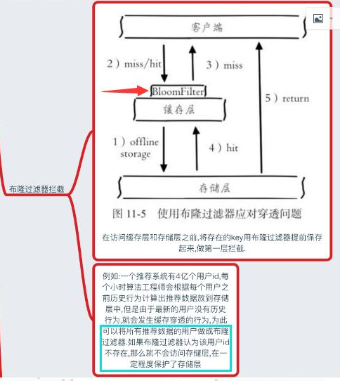 3..提供一个能迅速判断请求是否有效的拦截机制,比如,利用布隆过滤器,内部维护一系列合法有效的key。迅速判断出,请求所携带的Key是否合法有效。如果不合法,则直接返回。