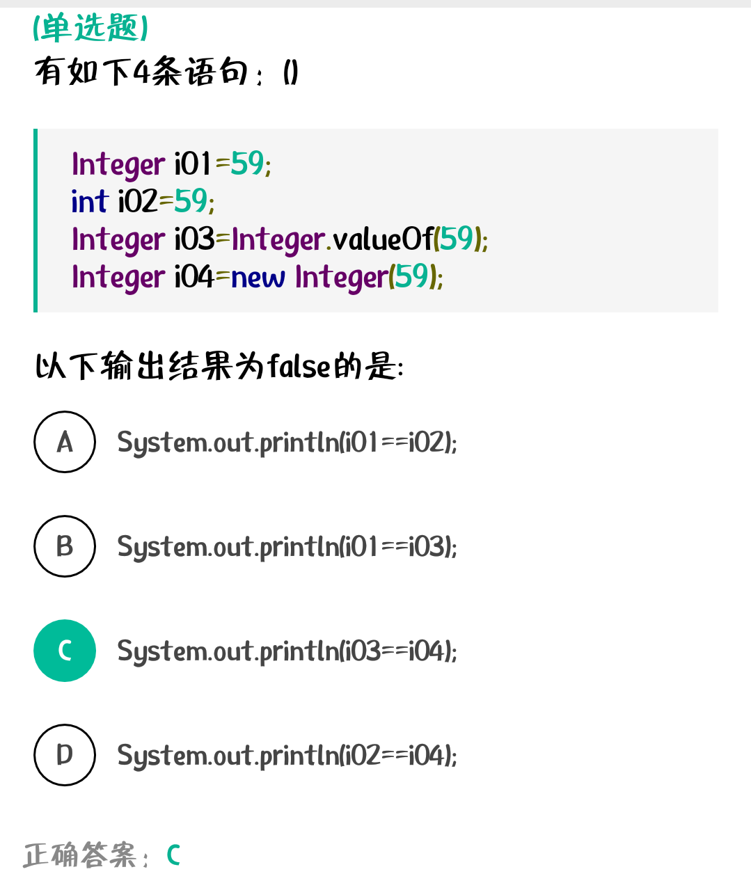 A.所有和int(非封装类比较的,只要数值相同就行) B.io3由valueof弄出来的,所以和io1相同 C.io4是new出来的,所以地址不一样,就不相同 D.和A相同 转载于:https://www.cnblogs.com/12344321hh/p/7461473.html
