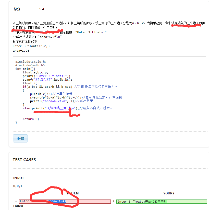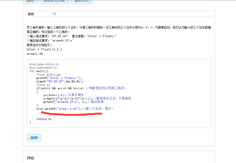 还有一道题,也是太坑人啦,题目说,我们认为输入的三个数据,是正确的。...但是11分只能得到5分,因为他有测试点,数据是故意错误的???WTF