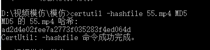 certutil -hashfile 123.MP4 MD5